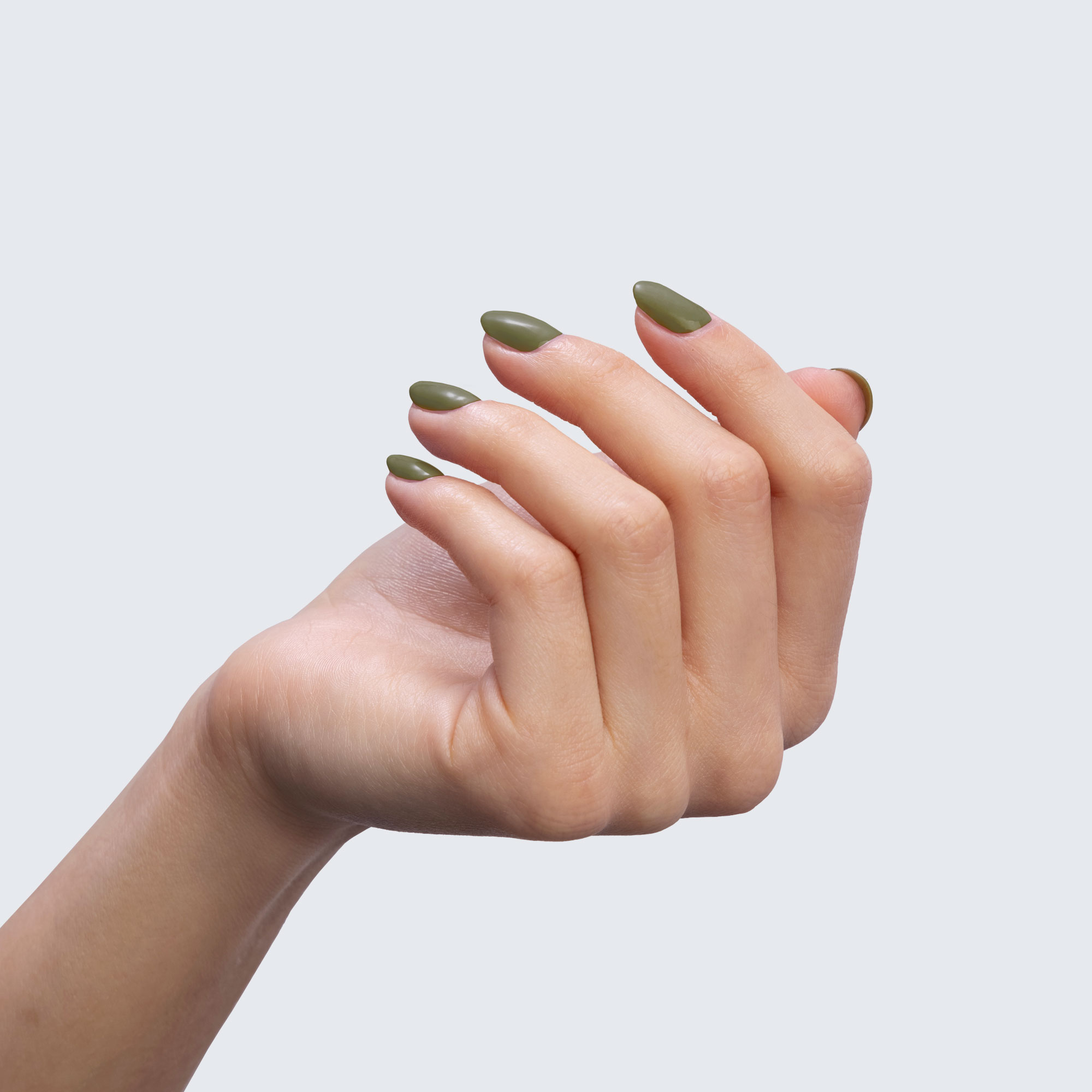 Olive green. Medium-dark. Opaque. Warm undertone.